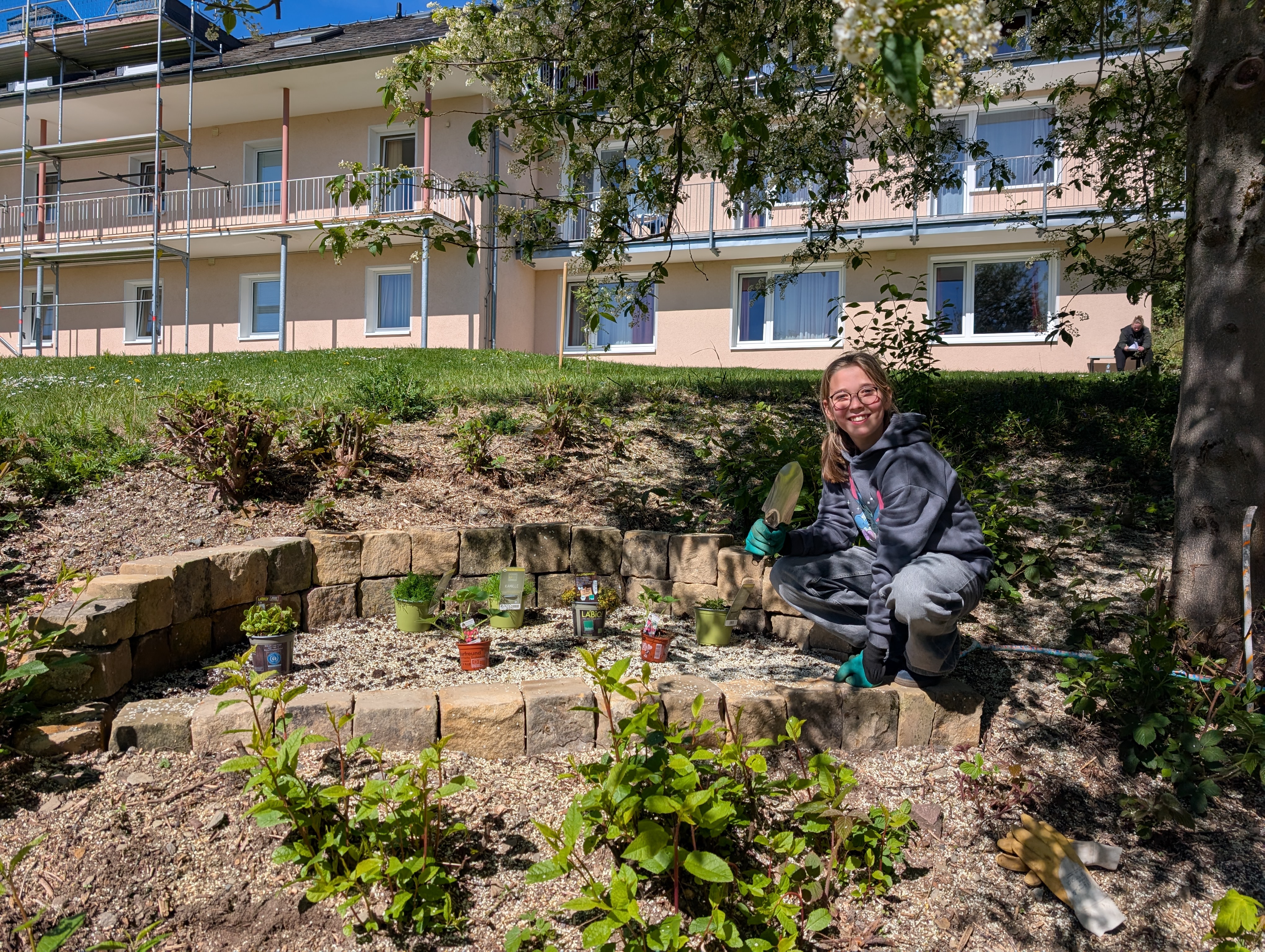 Madita konnte heute die  Küche besuchen und Salat schneiden, die Hauspflege unterstützen und im Garten ein Kräuterbeet bepflanzen sowie in der Verwaltung helfen und auch ein Patchwork Seminar bestaunen. Ein klein wenig Zeit für Billard im Freizeitbereich des Hauses war auch möglich.