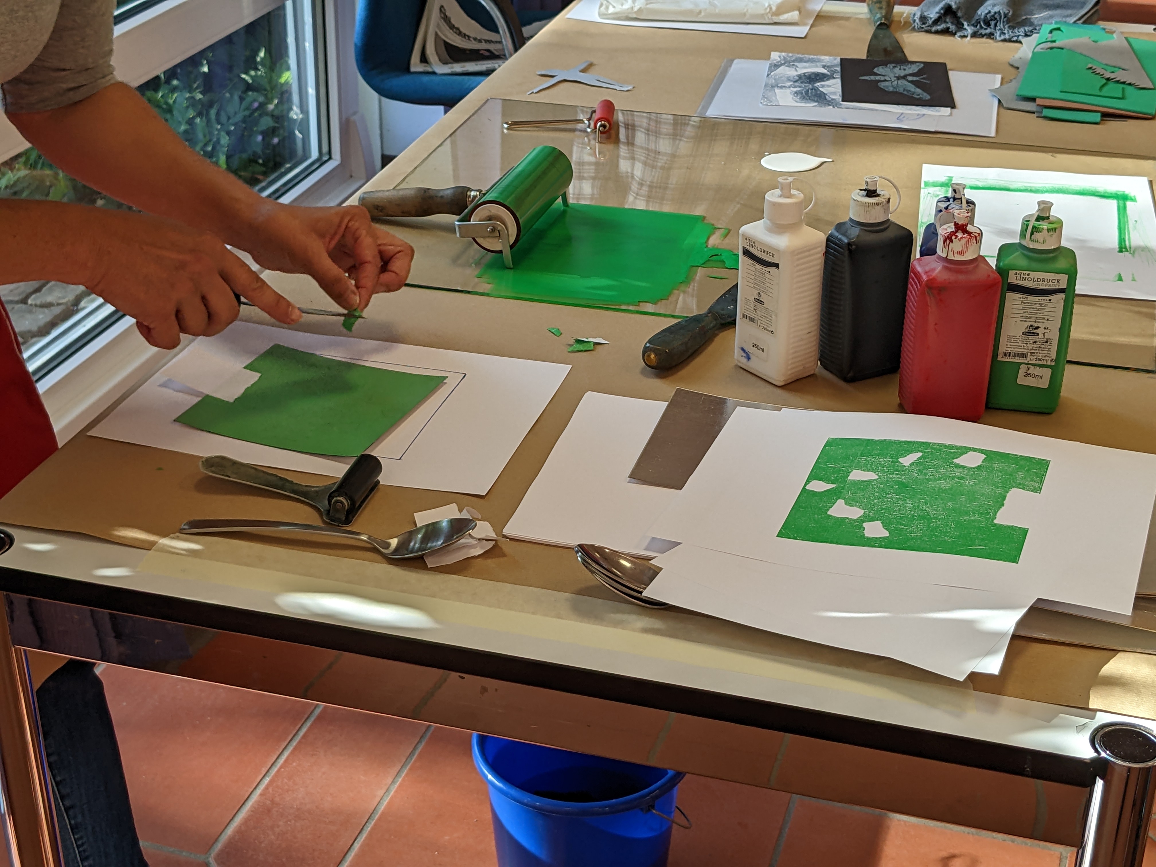 Ziel des Kurses ist es, die Teilnehmerinnen und Teilnehmer mit verschiedenen Druckmethoden vertraut zu machen.Teilnehmende erwerben praxisorientierte Kenntnisse in Verfahren wie Monotypie, Linoldruck und experimentellen Materialdrucken und deren Kombinationsmöglichkeiten. Mit leicht verfügbaren Materialien und einfachen Methoden entdecken Sie kreative Wege, um für sich oder eben mit Menschen aus unterschiedlichen Altersgruppen und verschiedenen Bereichen gestalterisch zu arbeiten.